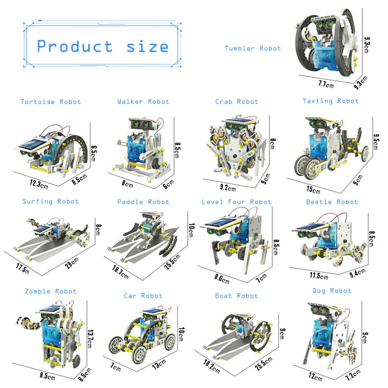 Powered entirely by solar energy, each robot model demonstrates the power of green technology in a fun and interactive way. No batteries or external power needed—just direct sunlight.